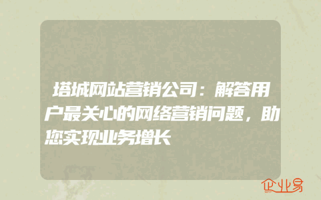 - 塔城网站营销公司:解答用户最关心的网络营销问题,助您实现业务增长