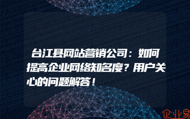 - 台江县网站营销公司:如何提高企业网络知名度?用户关心的问题解答!