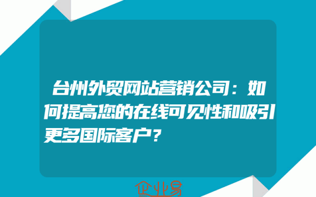 - 台州外贸网站营销公司:如何提高您的在线可见性和吸引更多国际客户?