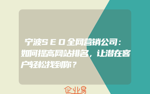 - 宁波SEO全网营销公司:如何提高网站排名,让潜在客户轻松找到你?