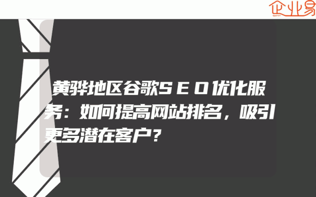- 黄骅地区谷歌SEO优化服务:如何提高网站排名,吸引更多潜在客户?