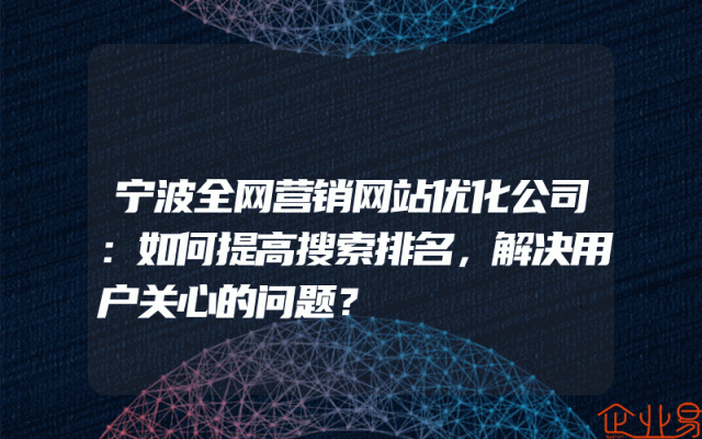 - 宁波全网营销网站优化公司:如何提高搜索排名,解决用户关心的问题?
