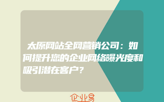 - 太原网站全网营销公司:如何提升您的企业网络曝光度和吸引潜在客户?