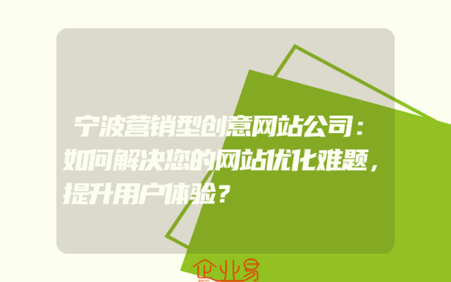 - 宁波营销型创意网站公司:如何解决您的网站优化难题,提升用户体验?