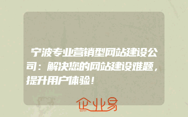 - 宁波专业营销型网站建设公司:解决您的网站建设难题,提升用户体验!
