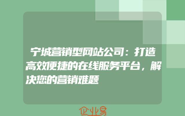- 宁城营销型网站公司:打造高效便捷的在线服务平台,解决您的营销难题