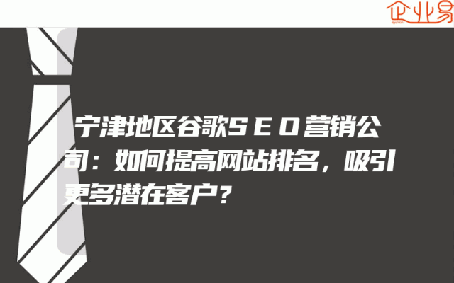 - 宁津地区谷歌SEO营销公司:如何提高网站排名,吸引更多潜在客户?