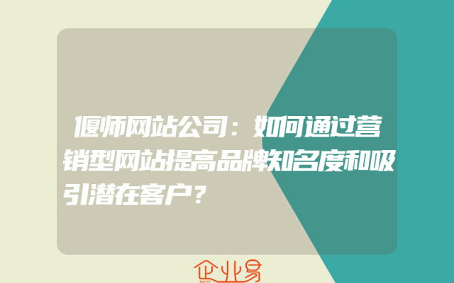 - 偃师网站公司:如何通过营销型网站提高品牌知名度和吸引潜在客户?
