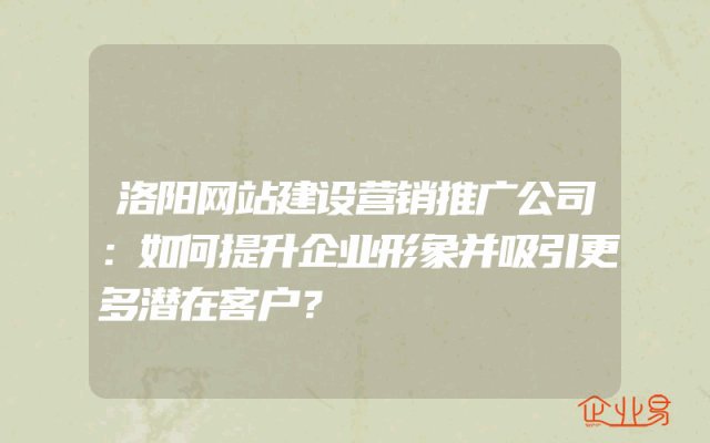 - 洛阳网站建设营销推广公司:如何提升企业形象并吸引更多潜在客户?
