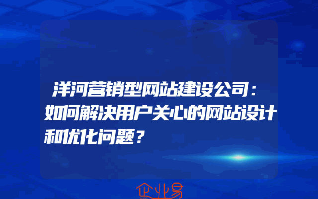 - 洋河营销型网站建设公司:如何解决用户关心的网站设计和优化问题?