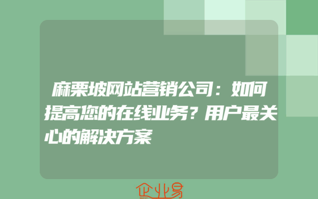 - 麻栗坡网站营销公司:如何提高您的在线业务?用户最关心的解决方案