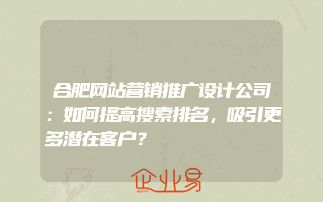 - 合肥网站营销推广设计公司:如何提高搜索排名,吸引更多潜在客户?