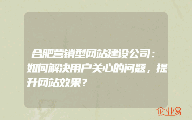 - 合肥营销型网站建设公司:如何解决用户关心的问题,提升网站效果?