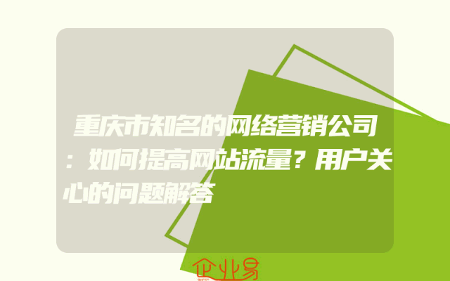 - 重庆市知名的网络营销公司:如何提高网站流量?用户关心的问题解答
