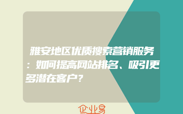 - 雅安地区优质搜索营销服务:如何提高网站排名、吸引更多潜在客户?