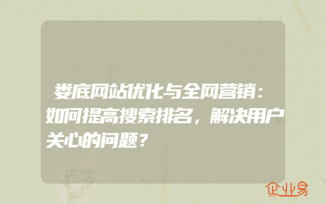 - 娄底网站优化与全网营销:如何提高搜索排名,解决用户关心的问题?
