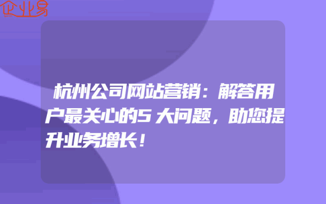 - 杭州公司网站营销:解答用户最关心的5大问题,助您提升业务增长!