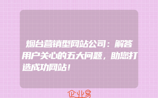 - 烟台营销型网站公司:解答用户关心的五大问题,助您打造成功网站!