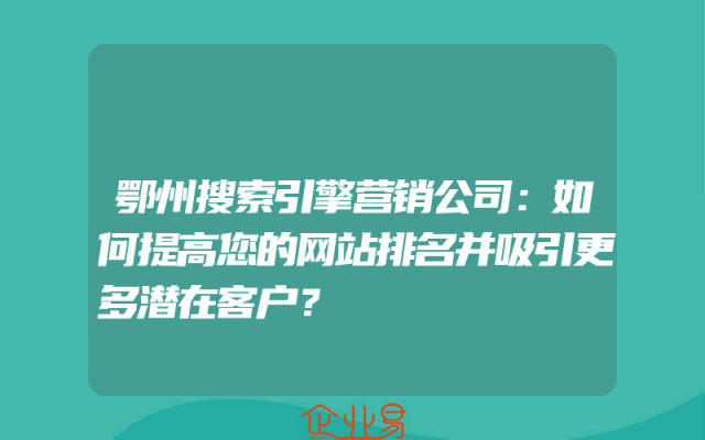 - 鄂州搜索引擎营销公司:如何提高您的网站排名并吸引更多潜在客户?
