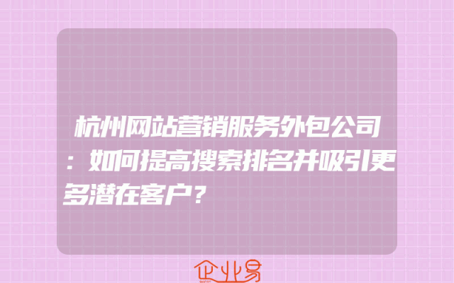 - 杭州网站营销服务外包公司:如何提高搜索排名并吸引更多潜在客户?