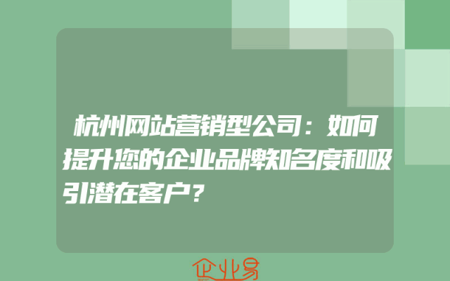 - 杭州网站营销型公司:如何提升您的企业品牌知名度和吸引潜在客户?