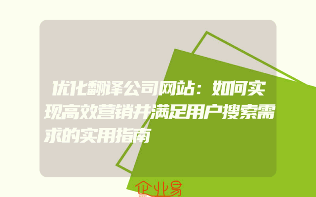 - 优化翻译公司网站:如何实现高效营销并满足用户搜索需求的实用指南在当今全球化的市场环境中,翻译公司需要一个专业的网站来展示他们的服务、吸引潜在客户并提高品牌知名度。然而,仅仅拥有一个漂亮的网站并不足够,企业还需要通过有效的网络营销策略来提升