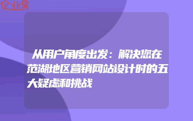 - 从用户角度出发:解决您在范湖地区营销网站设计时的五大疑虑和挑战