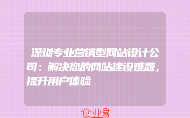 - 深圳专业营销型网站设计公司:解决您的网站建设难题,提升用户体验