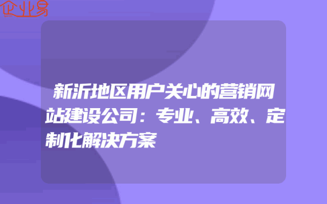- 新沂地区用户关心的营销网站建设公司:专业、高效、定制化解决方案在当今数字化时代,企业需要一个专业的营销网站来吸引潜在客户并提升品牌知名度。然而,如何选择一家合适的营销网站建设公司却是一个令人头痛的问题。对于新沂地区的用户来说,他们更加关心的