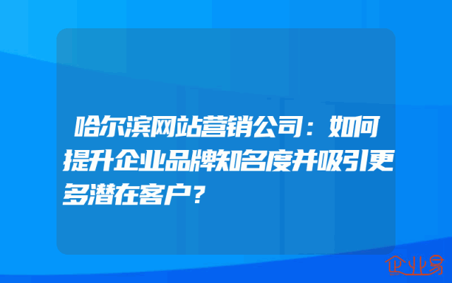 - 哈尔滨网站营销公司:如何提升企业品牌知名度并吸引更多潜在客户?