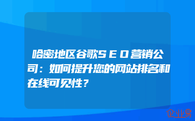 - 哈密地区谷歌SEO营销公司:如何提升您的网站排名和在线可见性?