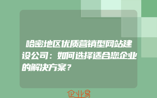 - 哈密地区优质营销型网站建设公司:如何选择适合您企业的解决方案?