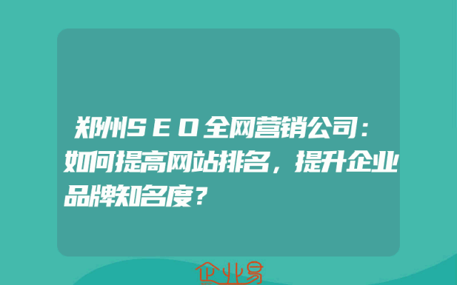 - 郑州SEO全网营销公司:如何提高网站排名,提升企业品牌知名度?