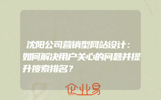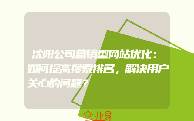 - 沈阳公司营销型网站优化:如何提高搜索排名,解决用户关心的问题?