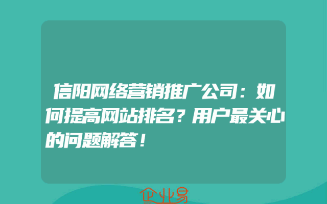 - 信阳网络营销推广公司:如何提高网站排名?用户最关心的问题解答!