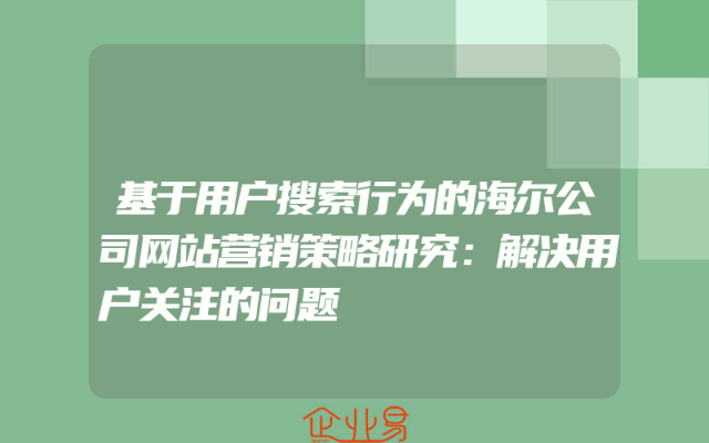 - 基于用户搜索行为的海尔公司网站营销策略研究:解决用户关注的问题