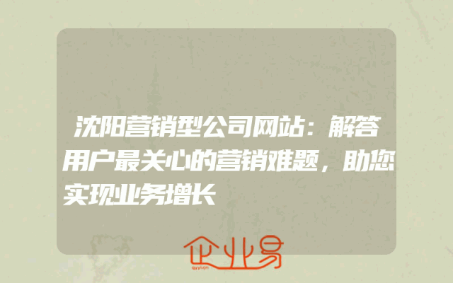 - 沈阳营销型公司网站:解答用户最关心的营销难题,助您实现业务增长