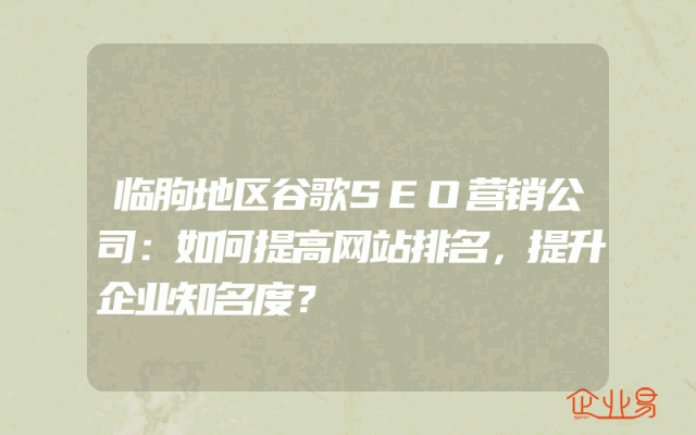 - 临朐地区谷歌SEO营销公司:如何提高网站排名,提升企业知名度?